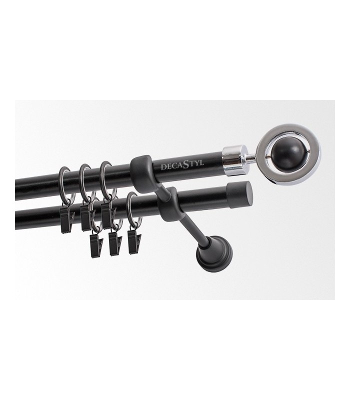 Kovová garniža čierna matná dvojtyčová s koncovkou Sfera