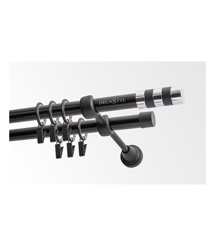 Kovová garniža čierna matná dvojtyčová s koncovkou Valec